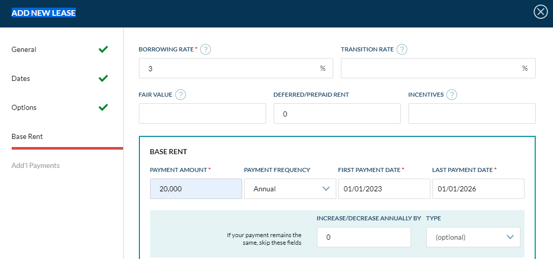 Enter the information into LeaseGuru in the appropriate fields, shown below: